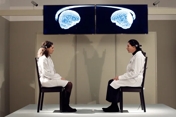 The Mutual Wave Projects combine art, neuroscience, and education to capture and embody the elusive notion of 'being on the same wavelength' with another person through brainwave synchronization.
